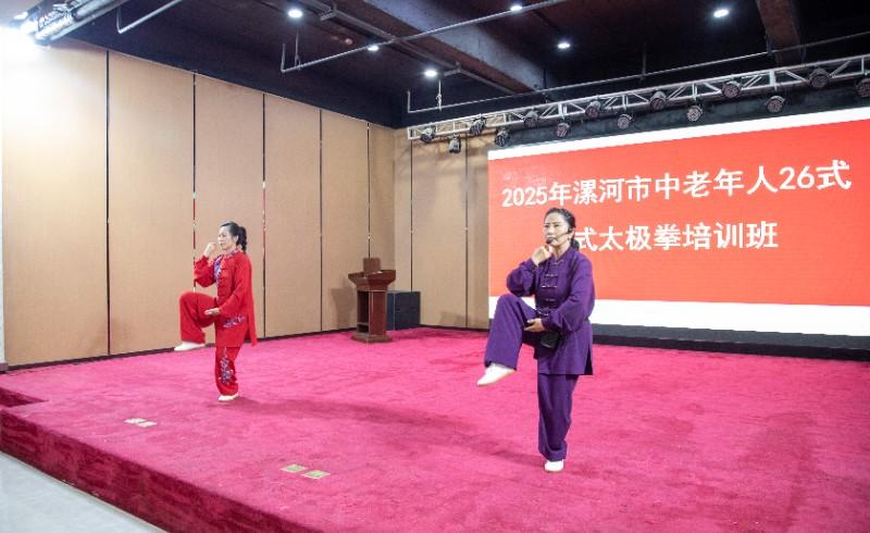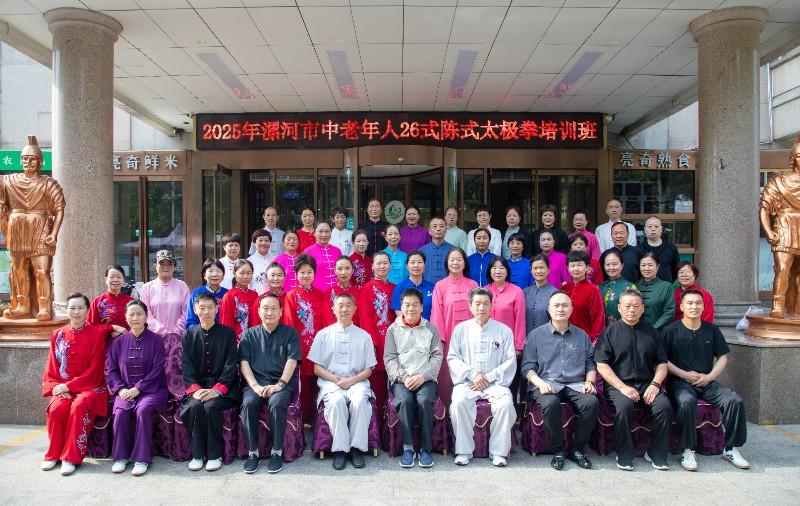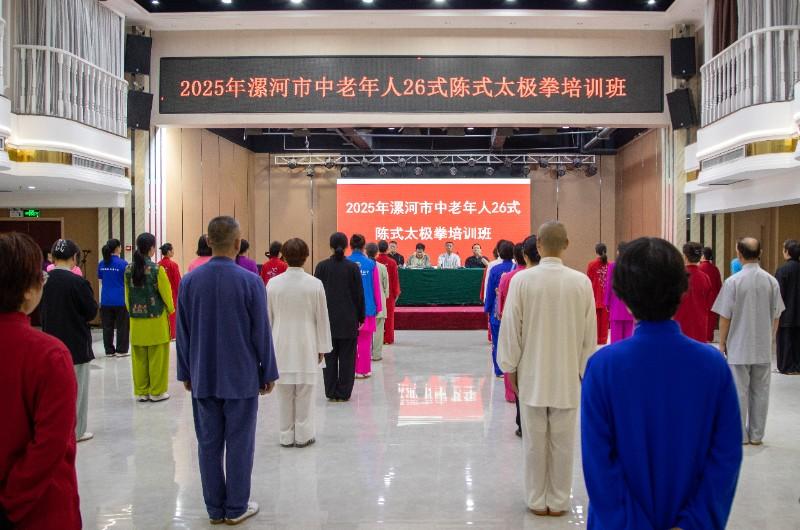 为弘扬太极文化,助推全民健身,4月26日上午,漯河市中老年26式陈式太极拳培训班在市亮奇酒店三楼会议室开班。来自全市县区的50多名学员参加培训,市老体协副主席李顺祥出席开班仪式。市太极拳专委会副主任周效禹、卢红伟、陈广山、索建华、李琦、李庆哲参加开班仪式。
