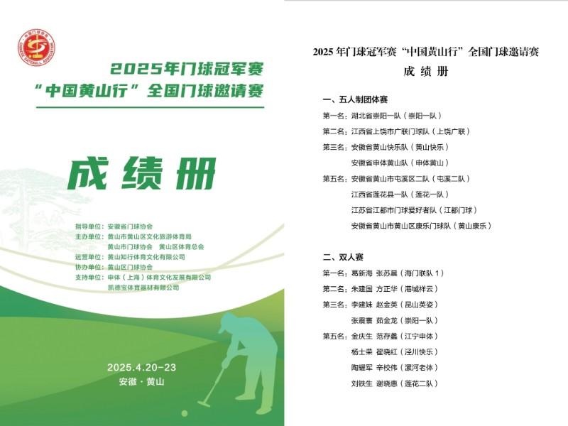 4 月 19 日至 22 日,在这春风温柔、万物复苏的美好时节2025 年门球冠军赛 “中国黄山行” 全国门球邀请赛在黄山区门球场落幕。来自全国 25 支团体、46 支双人赛队伍共 200 余名选手同场竞技,历经 211 场激烈对决,漯河市老年体协成年人代表队首次受邀参赛,我市双打代表队陶耀军辛校伟组合取得了双打第五名的成绩,本次赛事即锻炼了年轻人队伍,又学习吸引了全国大赛赛事的成功举办经验,为我市下步门球运动走出去,取佳绩打下良好基础。最终湖北崇阳一队摘得五人制团体赛冠军,江苏南通葛新海 、张苏晨师生组合斩获双人赛冠军。