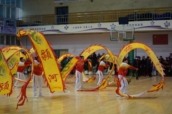 在展演现场,身着华丽服装的鼓手们一会儿高扬鼓槌,铿锵激越的鼓声震天动地;一会儿轻击鼓弦,似珠玉落盘,泉水叮咚,为展演活动酿造了火热的气氛。抖空竹的选手们一会儿高抛空竹,又扯弦稳稳地接住旋转的空竹;一会儿跳跃腾挪,空竹在脚下穿过,缠身环绕,上下盘旋的空竹像粘在线上一般;双人对接空竹,准确完美,默契十足,令人刮目相看,直叹高手在民间。健身气功的队员们在祥和动听的音乐声中展示中华民族传统文化的博大精深。舞龙旗的选手们把龙旗舞得活灵活现,一会儿在地上翻滚,一会儿在空中游动;集体舞动好似群龙闹海,浪花翻腾。最令人瞩目的还是舞动6米高杆上25米长的龙旗的队员,天上地下翻腾旋转,划破长空,神似真龙在空中翩翩起舞,充满着灵动和优美,磅礴的气势,震撼人心,令观众陶醉其中,连连击掌,惊叹不已。甩鞭子的女队员们三人一排列阵,左摔右摔,一条条灵活的蛇在空中舞蹈,众人舞动鞭子似金蛇狂舞,清脆的鞭声响如爆竹。她们转身复回,鞭子在空中划出一道道优美的弧线,犹如闪电划破长空,让人目不转睛,震撼着人们的耳膜,令人心旷神怡。