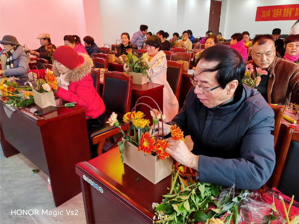 在插花培训的过程中,老人们不仅学到了插花技艺,更在交流互动中增进了彼此的了解与友谊。他们纷纷表示,这样的活动不仅让他们感受到了新年的喜庆氛围,还让他们在插花创作中找到了乐趣,感受到了生活的美好。