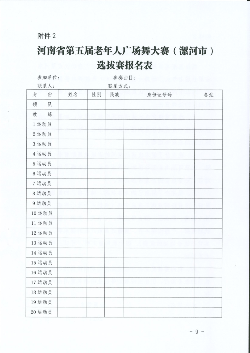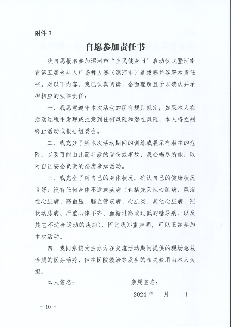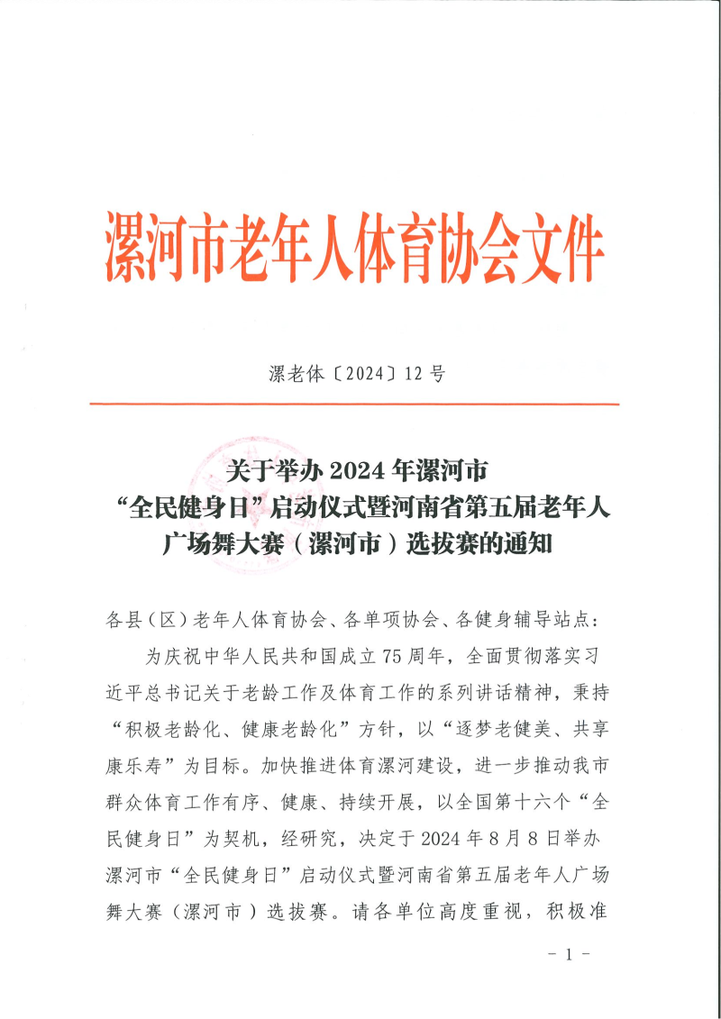 关于举办2024年漯河市“全民健身日”启动仪式暨河南省第五届老年人广场舞大赛(漯河市)选拔赛的通知