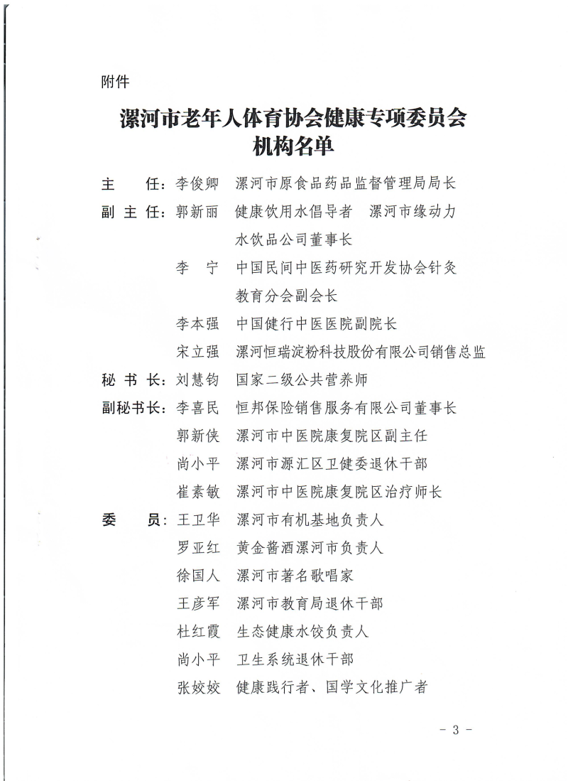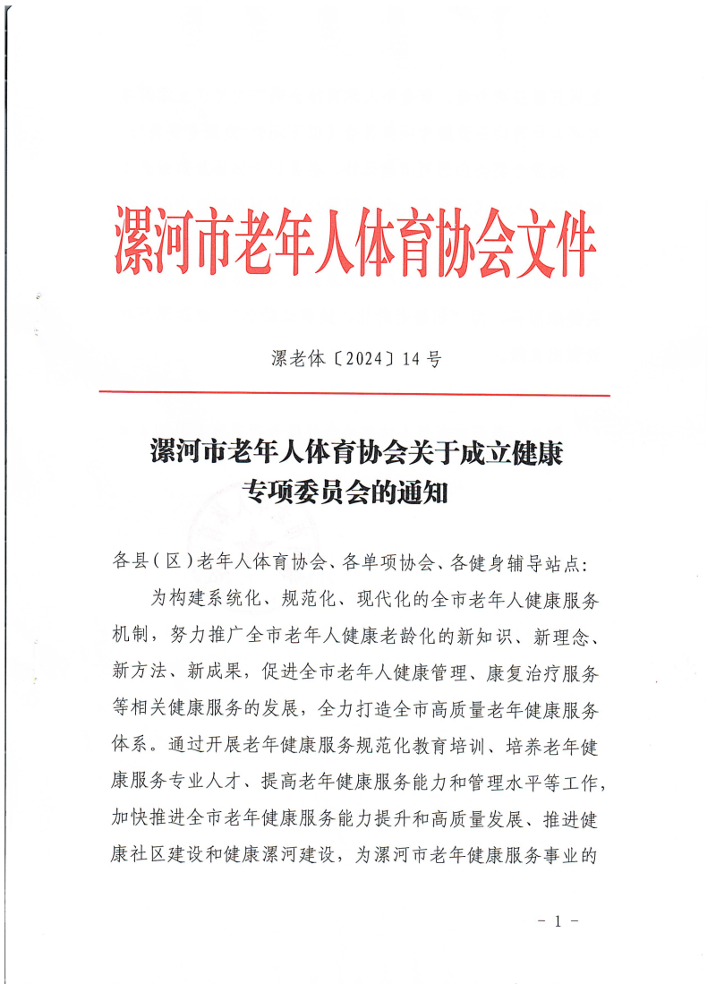 漯河市老年人体育协会关于成立健康专项委员会的通知