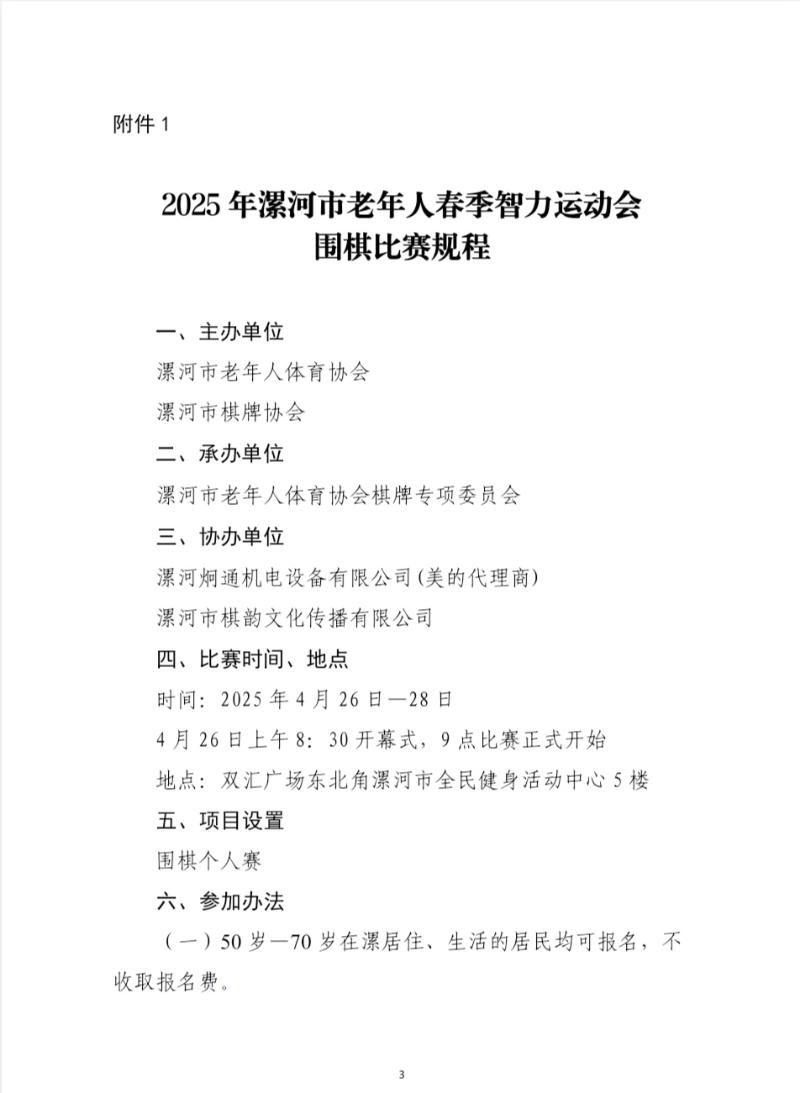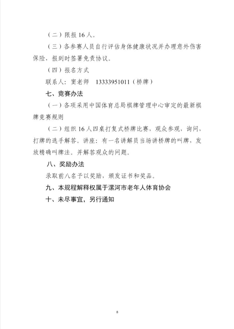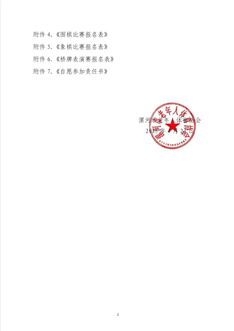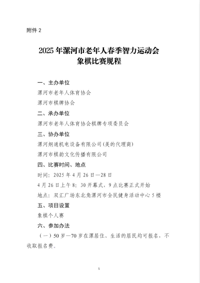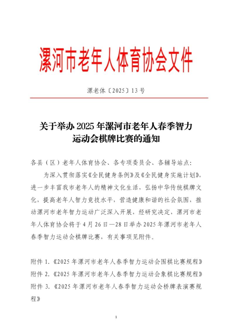 关于举办2025年漯河市老年人春季智力运动会棋牌比赛的通知