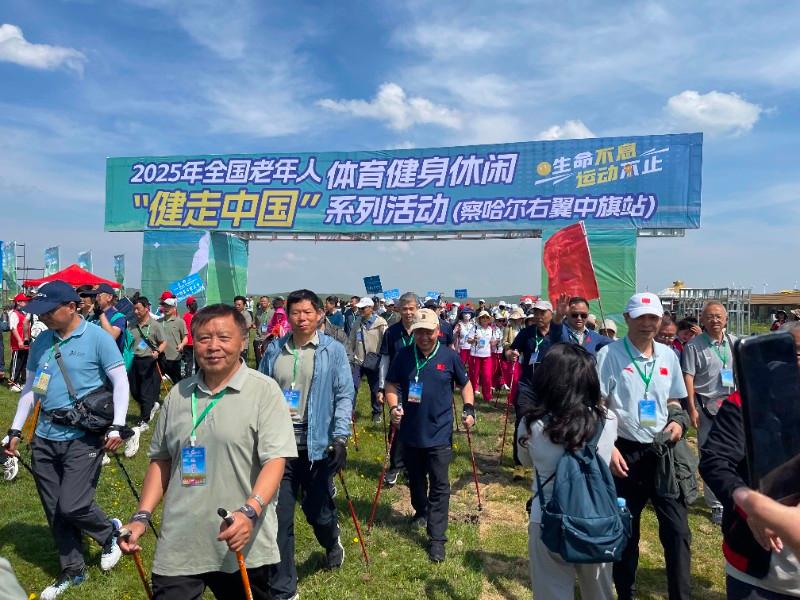 2025年“健走中国”体育健身休闲系列活动(内蒙古察哈尔右翼中旗站)落下帷幕,漯河市老年人体育协会持杖健步走专项委员会组队精彩参与。