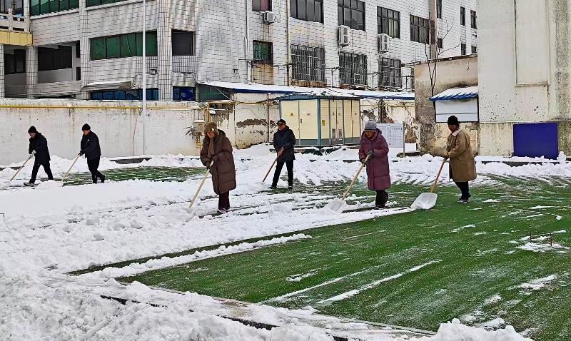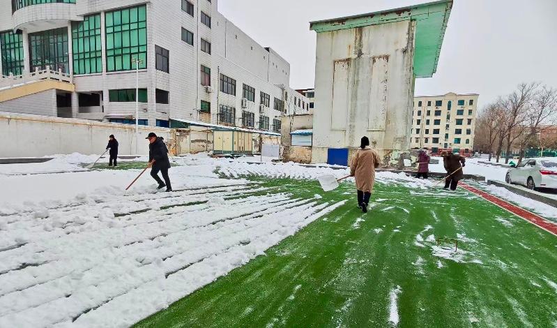 清扫现场,大家手持工具,分工协作,尽管天气寒冷,但大家身着厚实冬装,口鼻呼出白气,但劳动热情高涨。他们细心地将绿色场地上堆积的片片白雪铲除、清运。在众人的共同努力下,被白雪覆盖的门球场地面逐渐露出原本面貌,为后续恢复使用做好了准备。